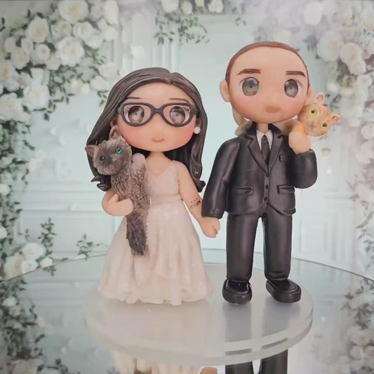 Discover our beautifully handcrafted wedding cake topper figurines, ranging from whimsical to elegant bride and groom designs. Each piece is meticulously crafted with care and attention to detail, ensuring your topper is as unique as your big day. Whether your style leans toward timeless classics or something more modern and playful, we have the perfect design to match your vision.